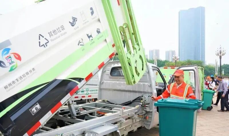 二是在生活垃圾收运方面,先后投入配置了159台新能源生活垃圾收运车辆。其中52辆是通过政企合力,柳州五菱公司利用自身技术、产业、工业的优势,根据柳州市环卫工作的具体实际,制造出性能优异、品质可靠的新能源环卫车产品。该批车辆采用的是工业纯电动加强型小卡底盘,搭载液压尾板、双液压举升缸等装置,可实现垃圾车分类收集、运输、处理的机械化高效操作。