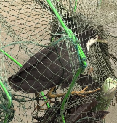 当日,执法队员巡查至萝卜洲附近浅滩时,发现一只白面水鸡被困于废弃渔具中,其爪部被渔具缠绕,行动受到限制。执法队员第一时间采取保护措施实施解救,经仔细检查,确认其无严重外伤且具备野外生存能力后,选择一处适宜的栖息地将其放归自然,让这只珍稀鸟类重获自由。
