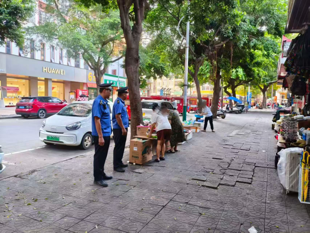 整治行动秉持“普法先行、劝导优先”原则,执法人员主动深入市场摊位与沿街商铺,通过“面对面讲政策、手把手教规范”的精准服务,向商户普及市容环境管理规定,引导商户自觉规范经营。截至目前,累计精准劝导跨门槛经营、霸占公共摊位等违规行为1000余起,教育规范市场周边非机动车、三轮车乱停乱放30余辆,以温情服务推动文明经营理念落地。