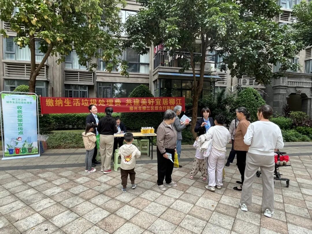 为破解小区生活垃圾处理费征收率偏低难题,进一步提高居民对城市生活垃圾处理费政策的知晓率,深入推进生活垃圾处理费征收工作,2025年11月6日、11月8日,柳江区环卫所联合相关小区物业及社区工作人员,先后在恒大雅苑等小区开展生活垃圾处理费征收专项宣传活动。