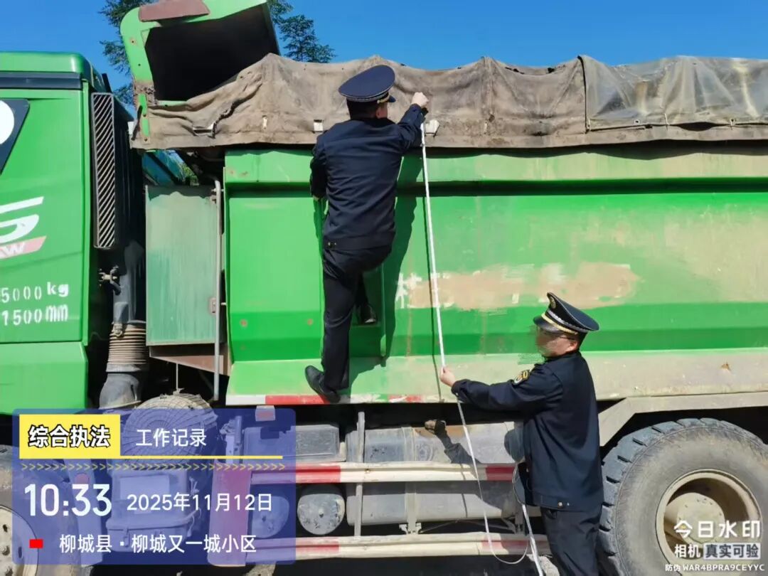 11月12日,柳城县综合行政执法局依法查处了一起渣土车违规运输建筑垃圾案件。