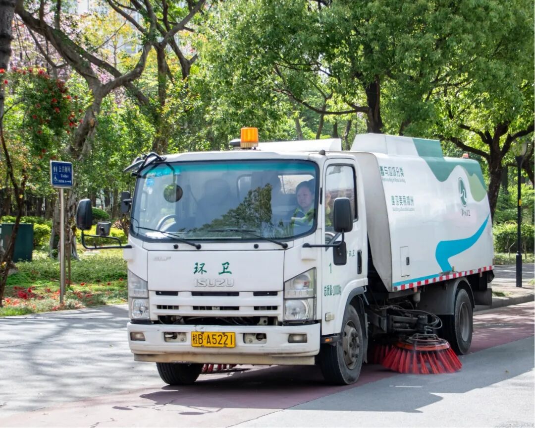在道路清扫保洁方面,采用“机械化清扫+ 精细化保洁+智能化监管”模式,每天凌晨对全城5773万平方米进行普扫,清除隔夜积尘;日间安排人员不间断巡扫,及时捡拾路面杂物。目前,市区主次干道机械化清扫率达到100%,背街小巷清扫率提升至86%以上。针对城市出入口、施工路段、工业园区等扬尘高发区域,实行“一路一策”精准管控。柳州市环卫处负责人介绍道,“对扬尘高发区域采用‘吸、扫、冲、洗、洒’五步作业法,作业频次较以往增加30%,就是要把扬尘堵在源头不扩散。”