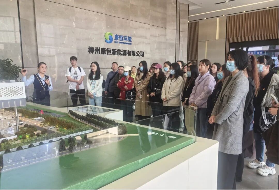 随后,参观队伍来到柳州市静脉产业园生活垃圾焚烧处理厂。这里每天处理近2000吨生活垃圾,年处理量70多万吨,年发电量近4亿千瓦时,实现垃圾减量化、资源化、无害化处理。通过沙盘模型和工作人员的通俗讲解,垃圾“变废为宝”的全流程清晰呈现:生活垃圾经发酵预处理后送入焚烧系统,高温焚烧产生的热能转化为电能,并入电网后可满足市民日常用电需求;焚烧过程中产生的烟气、飞灰等污染物,经过脱硫、脱硝、除尘等多道处理工序,最终各项排放指标均达到国家标准,实时显示在中控室大屏上。市环卫处相关负责人介绍:“从人工清运到机械化处理,再到资源化利用,柳州环卫的发展轨迹,正是城市生态治理能力提升的真实写照。”