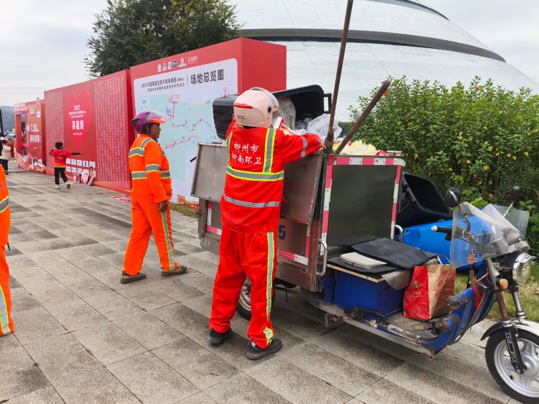 为确保赛事在优美的环境中进行,柳南环卫所的保障早已启动。在赛前连续五天的保障作业中,每天安排28名环卫工人、2辆三轮车、2辆养护车和1辆高压水车,针对火炬跑路线区域,展开了拉网式清理与精细化保洁,日均清理混合垃圾约2吨,以整洁的场地静候八方来客。