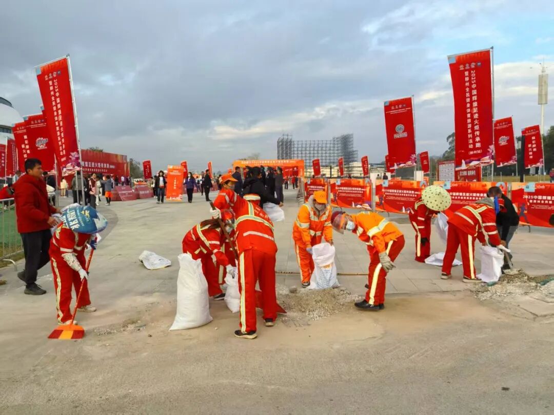 11月30日,2025中国辉煌足迹火炬传承跑(柳州站)暨柳州全民健身体育旅游系列活动在风景秀丽的柳南区螺蛳粉小镇成功举办。当运动员手擎火炬在7.88公里的赛道上接力奔跑,传递体育精神与奋进力量时,一条由环卫工人构筑的“橙色保障线”早已悄然铺就,成为这场盛事中坚实的后盾。