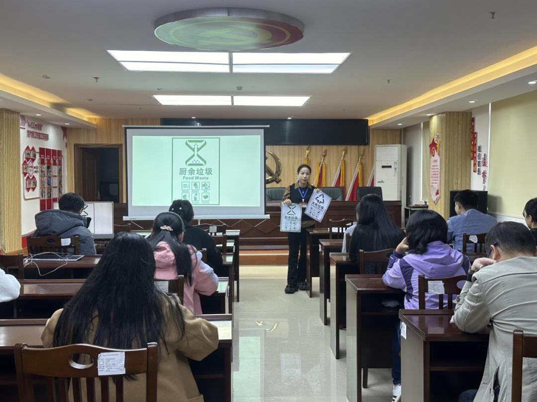 在钢城街道雀山佳苑小区,工作人员首先发放了生活垃圾分类宣传手册,随后采用“讲解+答疑”相结合的方式,围绕分类政策、投放设施配置、居民引导等重点内容,对物业管理人员和保洁员进行了系统培训。在分类收集点旁,工作人员结合实物展示与操作演示,详细说明了不同投放口的使用规范、垃圾桶的标识区别,以及如何有效引导居民准确投放、避免混投,提升物业及保洁人员在实际工作中的分类能力和宣传引导水平,为小区实现垃圾分类投放常态化、设施运行规范化夯实基础。在柳长街道,工作人员借助PPT生动讲解四类垃圾的具体区分方法。针对容易分错的物品,通过图片对比、案例拆解,让分类标准变得清晰明了。现场还穿插了分类知识问答环节,居民们踊跃参与,在互动中巩固分类知识,真正做到了“听得懂、学得会、用得上”。