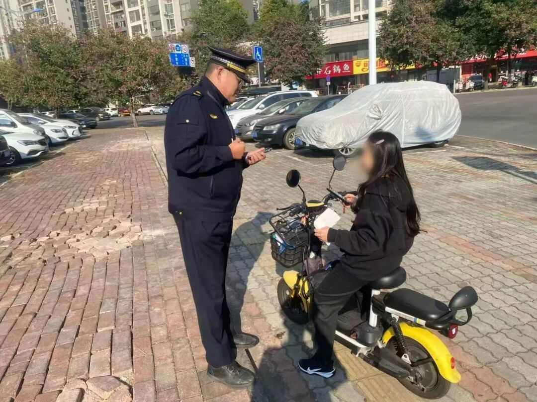 执法队员拿起手机查看,一条写着“请捡到手机者联系电话XXX”的短信正好显示。执法人员立即拨通了电话。十多分钟后,一名女子骑着电动车赶到现场认领手机。