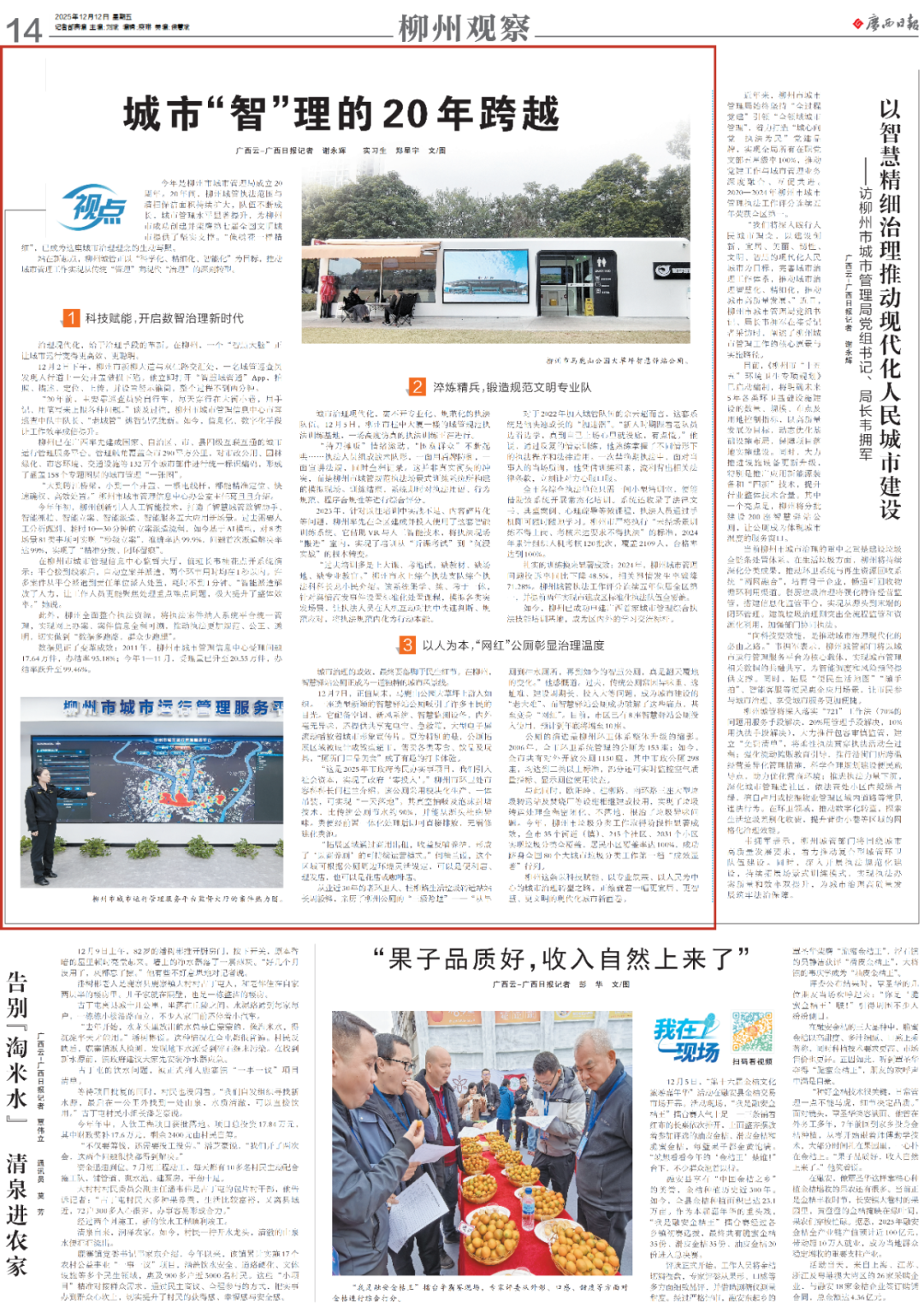 站在新起点,柳州城管正以“科学化、精细化、智能化”为目标,推动城市管理工作实现从传统“管理”向现代“治理”的深刻转型。