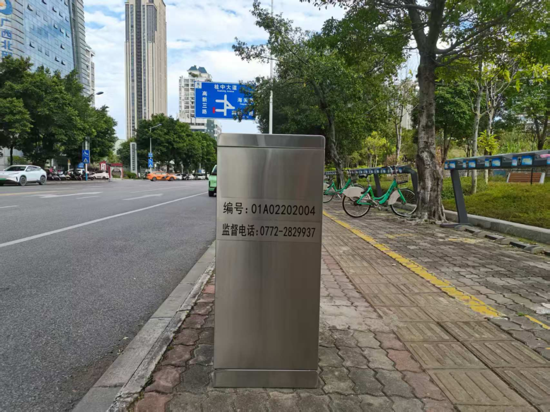 走在柳州街头小巷,细心的市民会发现,每个果皮箱的箱体上都多了两行设计简洁的编号,这个编号牌就是果皮箱的“身份证”。第一行是果皮箱的11位数“身份证号”。这串“身份证号”从左至右分别表示所属城区、道路等级、道路序号、箱体类型和果皮箱顺序编号等信息。第二行是监督电话,对应所属行政区的环卫主管部门。目前全市已有1万余个果皮箱拥有了专属“身份证明”。编号牌的设置,不仅提升了果皮箱的辨识度,也为日常监督管理提供了便利。