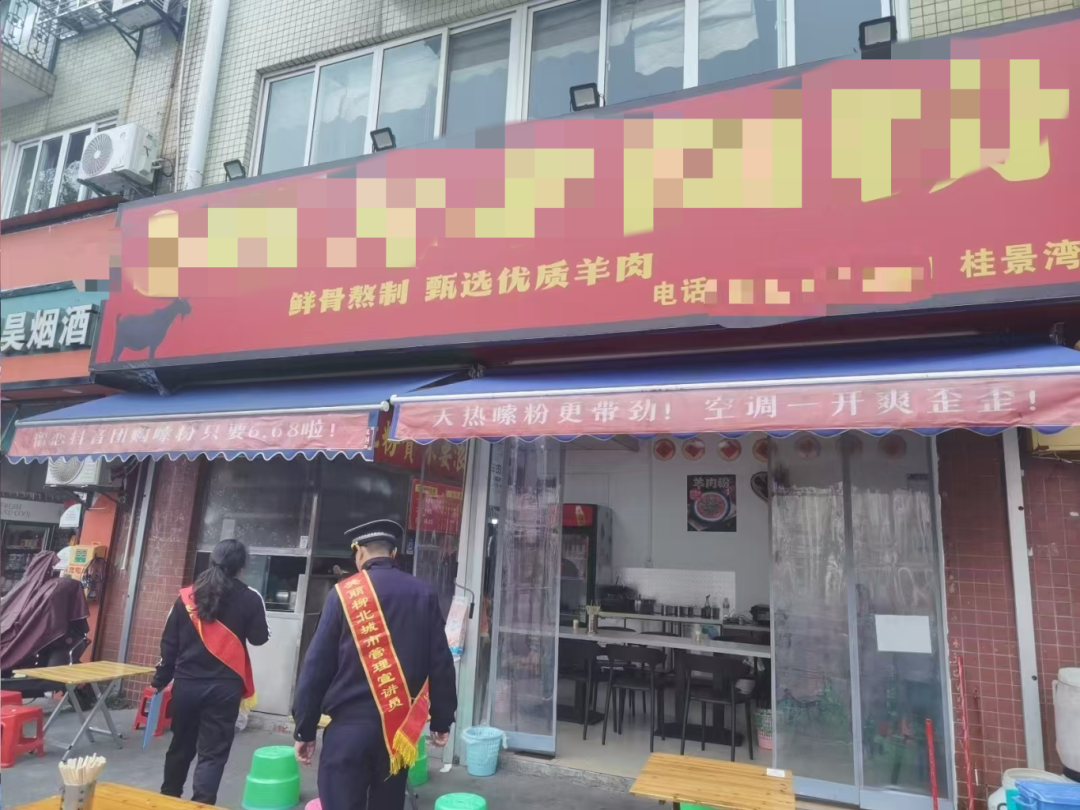 在桂景湾路,执法队员发现部分门店特别是餐饮店存在一些问题,如一家螺蛳粉店占用店外公共空间放置桌子和板凳,另外一家羊肉粉店不仅门口放置餐桌,地面还遗留着纸屑和垃圾等,针对这些问题,执法队员要求店主立即整改。同时,执法队员再次强调了“门前三包”责任制的重要性,明确指出商户在维护门前环境方面应履行的具体责任,希望商户们能够积极配合,共同维护好门前环境。