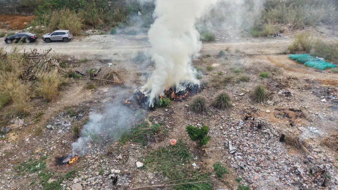 事后勘查中,执法人员发现起火点附近还堆有大量杂草,结合周边分布的菜地,初步判断此次露天焚烧可能是附近种菜市民为沤肥烧草所致。然而,经走访周边住户,受访者均表示对焚烧行为不知情。