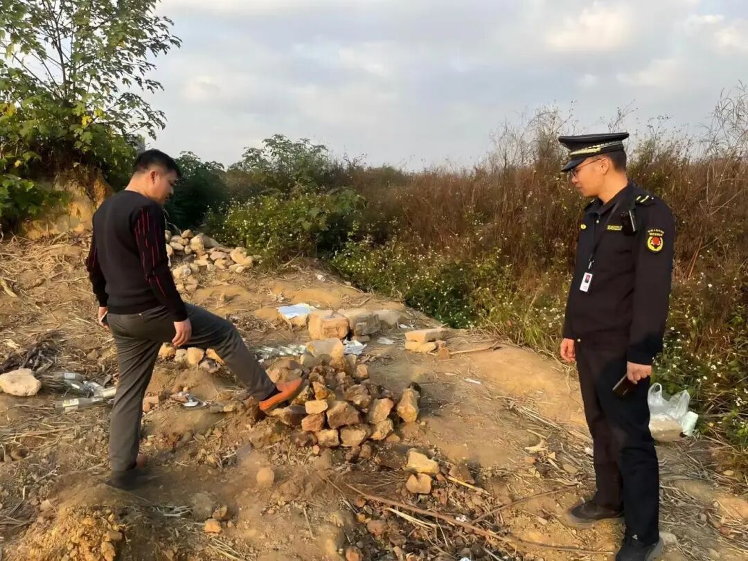 近期,执法人员在日常巡查中发现,辖区内绿化带、城郊空地等区域垒窑窑鸡的行为频发。在樟木路一带巡查时,执法人员当场发现3名群众正就地取土垒筑土窑,准备点火烤制食材。该区域周边杂草丛生,且距离居民区不足百米,火灾隐患突出,执法人员第一时间上前制止,并开展现场普法劝导。