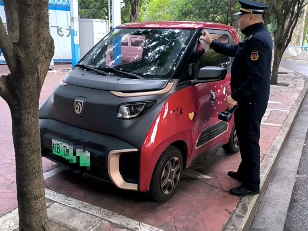 12月19日上午,该局一中队执法人员巡查至跃进路潭中高架桥下路段时发现,一辆红色的新能源车“鸠占鹊巢”违法停在非机动车泊位上,执法人员随即依法粘贴《违法停车告知单》。之后,由于当事人长时间未将车开走,执法人员依法用拖车将该车拖离现场。