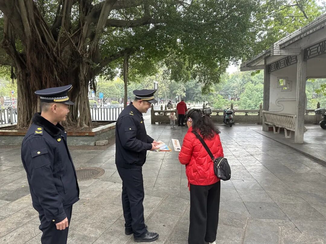 1月4日,龙潭公园、柳候公园及文惠路北段历史风貌区域周边,执法队员通过发放图文并茂的普法手册,向商户、市民和游客耐心讲解《历史文化名城名镇名村保护条例》《柳州市历史文化名城保护条例》等法规中与市民生活息息相关的条款,例如“老旧建筑外立面修缮应履行哪些手续”“严禁在历史建筑上刻划、涂污”“不得违法搭建建(构)筑物”等内容。结合近年来处理过的涉及历史建筑保护的典型案例,执法队员以案释法,让市民直观理解擅自改造、破坏历史风貌等行为可能承担的法律责任。一名执法队员说道:“我们希望通过通俗易懂的方式,让大家明白保护不是限制,而是为了更长久的传承。”