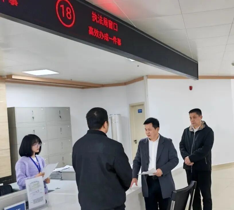 在城中区政务服务中心大厅综合行政执法窗口,韦拥军详细询问窗口业务办理流程、办理时限等核心信息,认真倾听一线执法队员工作汇报,深入了解日常工作中遇到的难点问题。调研中,韦拥军对窗口执法队员依法履职、用心服务群众的工作态度及取得的实效给予充分肯定。他强调,政务服务窗口是展示城市管理执法队伍形象和服务效能的重要平台,执法人员要牢固树立服务意识,持续优化办事流程,积极回应群众与企业诉求,切实提升服务满意度,为打造一流营商环境提供有力支撑。