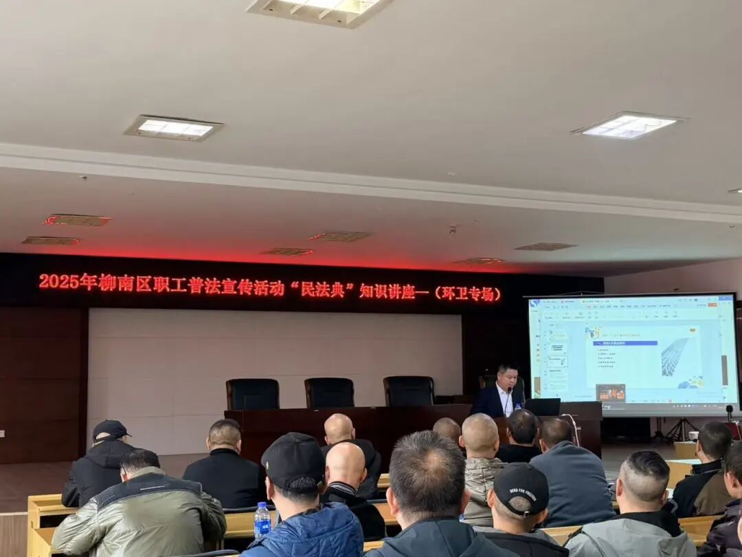近日,为精准对接一线环卫职工的法律维权需求,柳南区总工会联合柳南环卫所工会,在柳南环卫所五楼会议室开展《中华人民共和国民法典》知识讲座,近百名环卫职工到场参加。