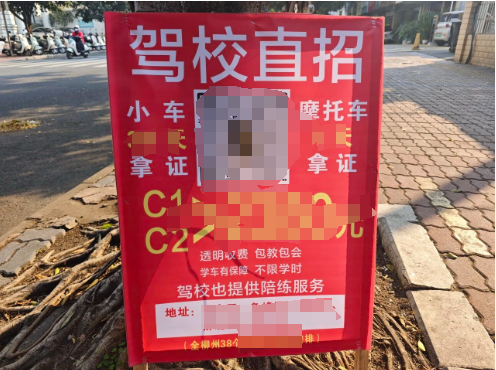 人行道变“招生驿站”?近百块违规驾校广告牌被清理