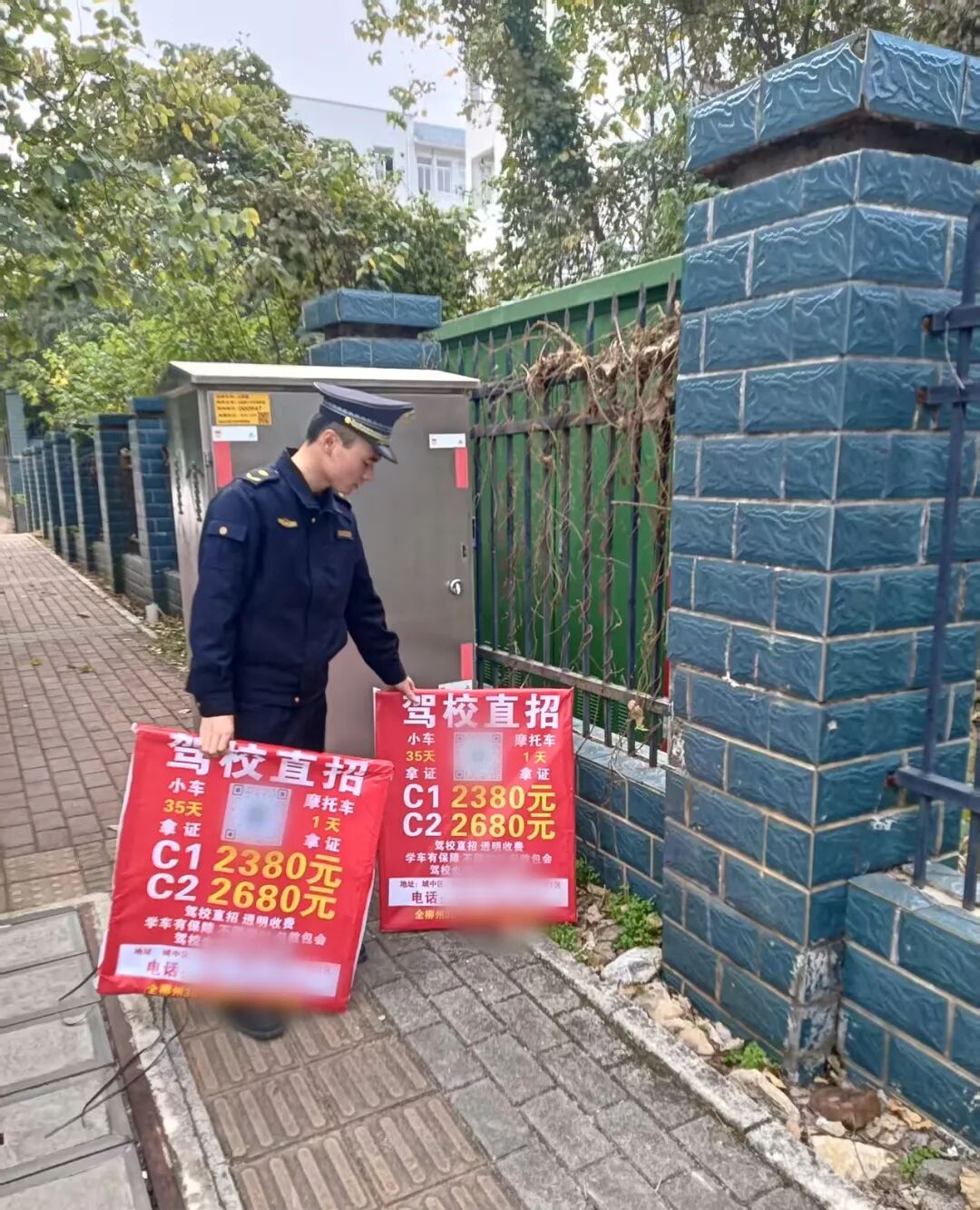 人行道竟成驾校“招生前沿”?连日来,城中区街头悄然冒出的各类驾校广告牌,不仅侵占公共空间,也成为了影响市容的“*********”。对此,执法部门果断行动,发现一块、清理一块,坚决维护道路通畅与市容整洁。