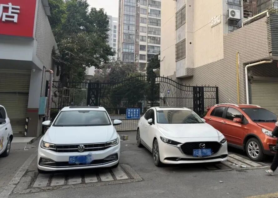 接到反映后,城中区综合行政执法局迅速响应。1月13日上午,执法人员在南二路现场看到,南侧人行道上停放着十多辆小汽车,非机动车位被全部占满。此外,华展华园小区2号门的通道上并排停着三辆小汽车,将大门完全堵死。尽管通道处设有“消防通道 禁止停车”的提示牌,却仍被车主无视。