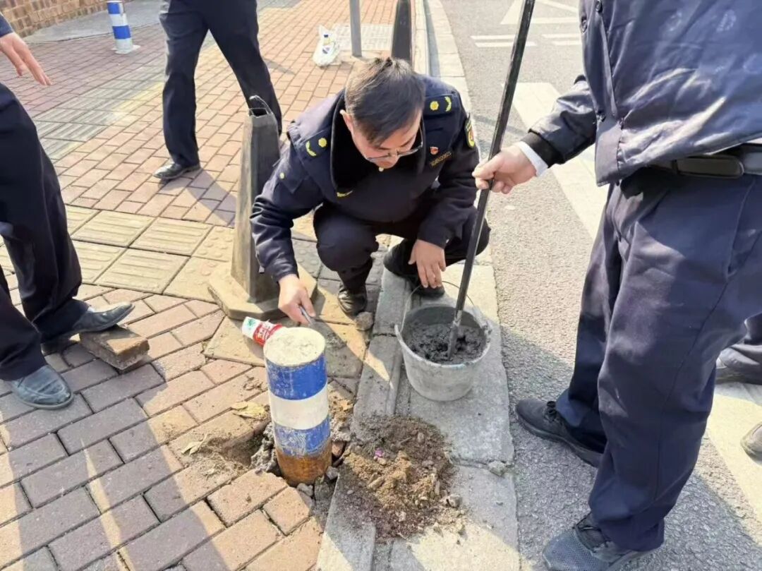 走访中,执法人员还发现该人行道一处进出口有三根隔离桩被人为破坏拔除,导致机动车由此驶入人行道违停。此外,部分非机动车位线因年久已模糊不清。为防止问题回潮,执法部门随后开展综合治理:1月14日上午,执法人员对破损隔离桩进行修复补装,重新施划模糊的非机动车位线,并增设醒目的非机动车停放标识。同时,大幅增加该区域巡查频次与执法力度,推动常态化监管。