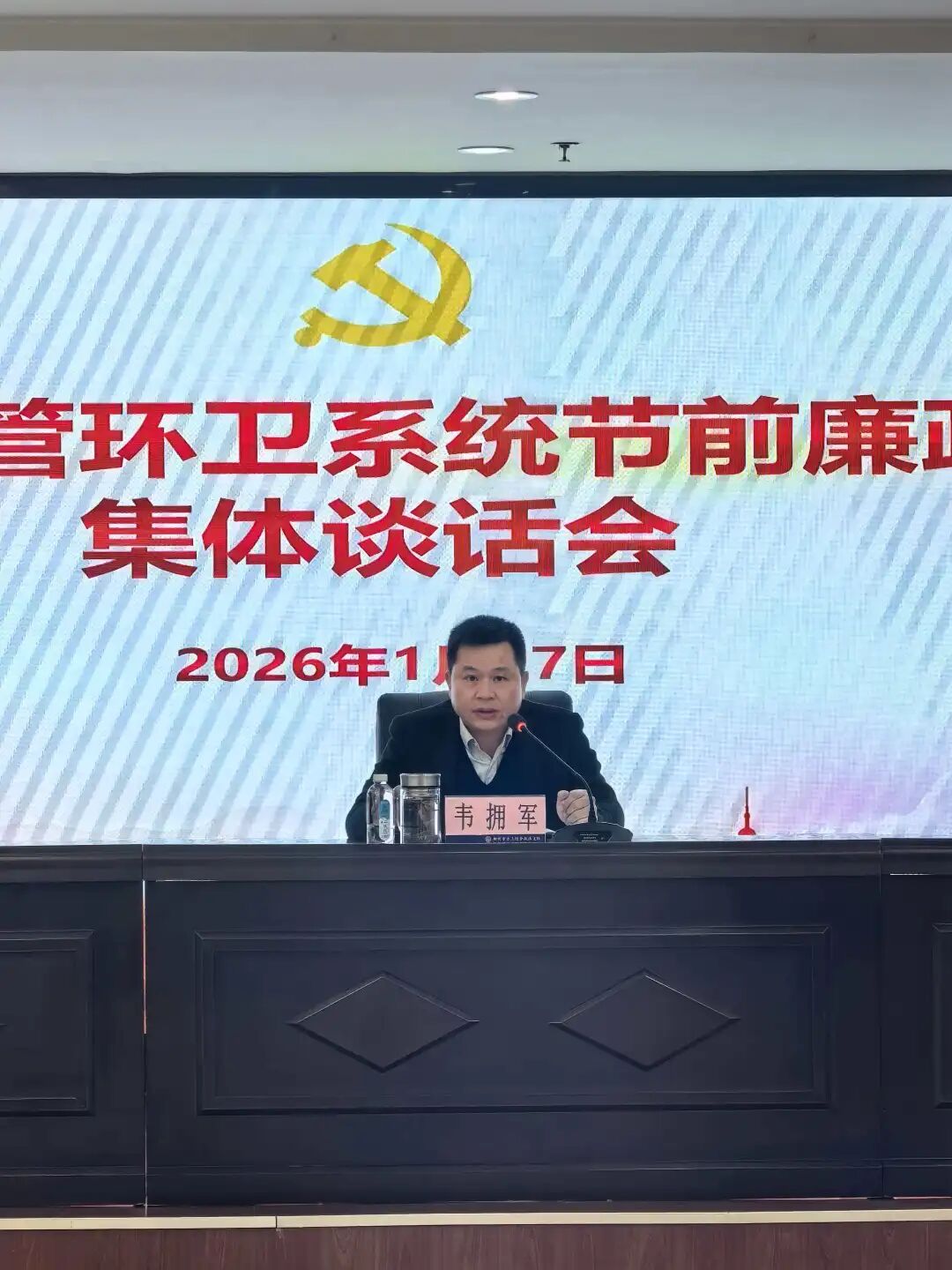 韦拥军强调:一是深刻领会中央最新精神,清醒认识党风廉政建设和反腐败斗争严峻复杂形势。要贯彻落实习近平总书记在二十届中央纪委五次全会上的重要讲话精神以及陈刚书记在自治区党委关于蓝天立等案件以案促改促治工作动员部署会议上的讲话精神,各级领导干部务必保持高度警惕,深刻认识作风关乎事业成败,决不能有丝毫麻痹思想和侥幸心理,始终绷紧廉洁自律这根弦。二是聚焦节日风险隐患。以严的基调筑牢廉洁自律防线。要扎实开展违规吃喝、违规收送礼品礼金专项治理,重点防范节假日期间“五类风险”:防范“礼尚往来”背后的围猎风险;防范“舌尖上的浪费”与腐败风险;防范“酒后失态”与违纪违法的风险;防范“车轮上的歪风”与特权风险;防范“宽松软”背后的失管失察风险。三是坚持更高标准、更严要求,领导干部必须发挥“头雁效应”。在廉洁过节上,各级领导干部必须以身作则、率先垂范。带头筑牢政治忠诚,夯实思想根基;带头严守纪律规矩,做到令行禁止;要带头扛起主体责任,履行“一岗双责”;带头培育优良家风,管好身边人员。四是紧密结合城管环卫职能,以过硬作风保障节日城市市容市貌整洁有序。将廉政要求融入节日城管环卫各项具体工作中,以“时时放不下心”的责任感,守住安全底线;以“群众利益无小事”的使命感,维护市容市貌秩序;以“恪尽职守”的担当精神,强化应急值守。五是强化监督执纪问责,确保各项纪律要求落地生根。会后,各级领导干部要第一时间将会议精神层层传达落实到每一名干部职工;机关纪委要加大监督检查力度,发现问题线索,迅速核查处置;对节日期间顶风违纪、出现问题的,要坚持零容忍态度,严肃追责问责,绝不姑息迁就。