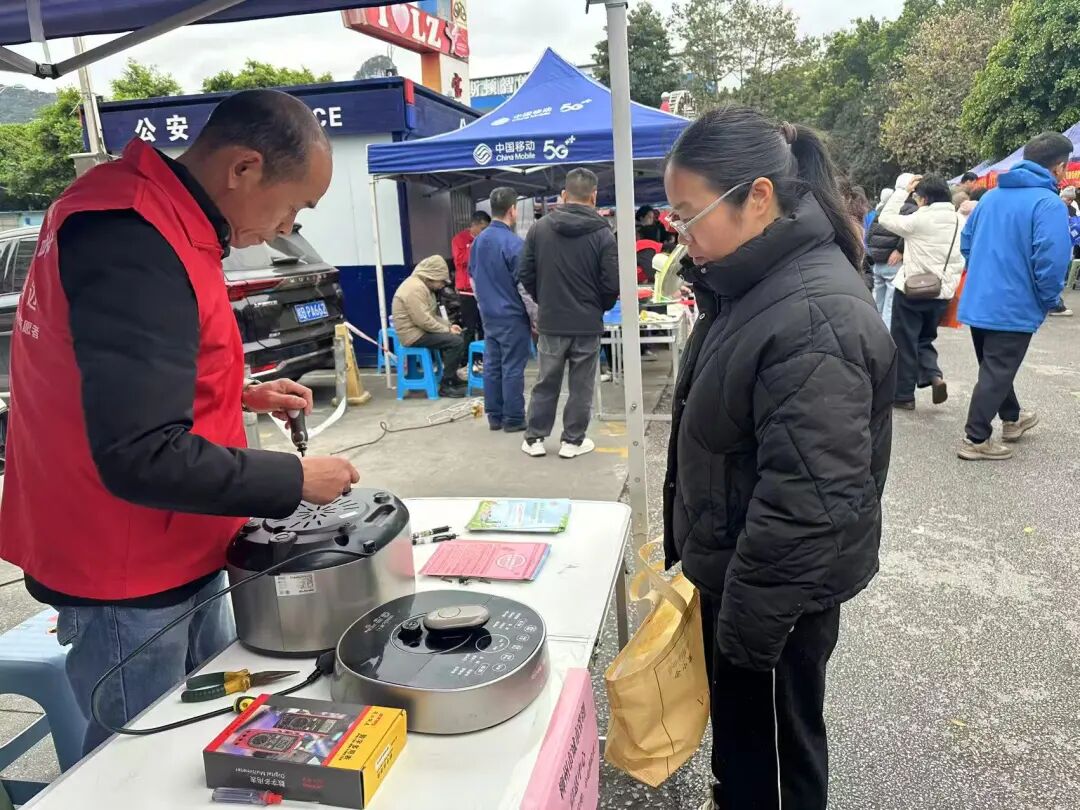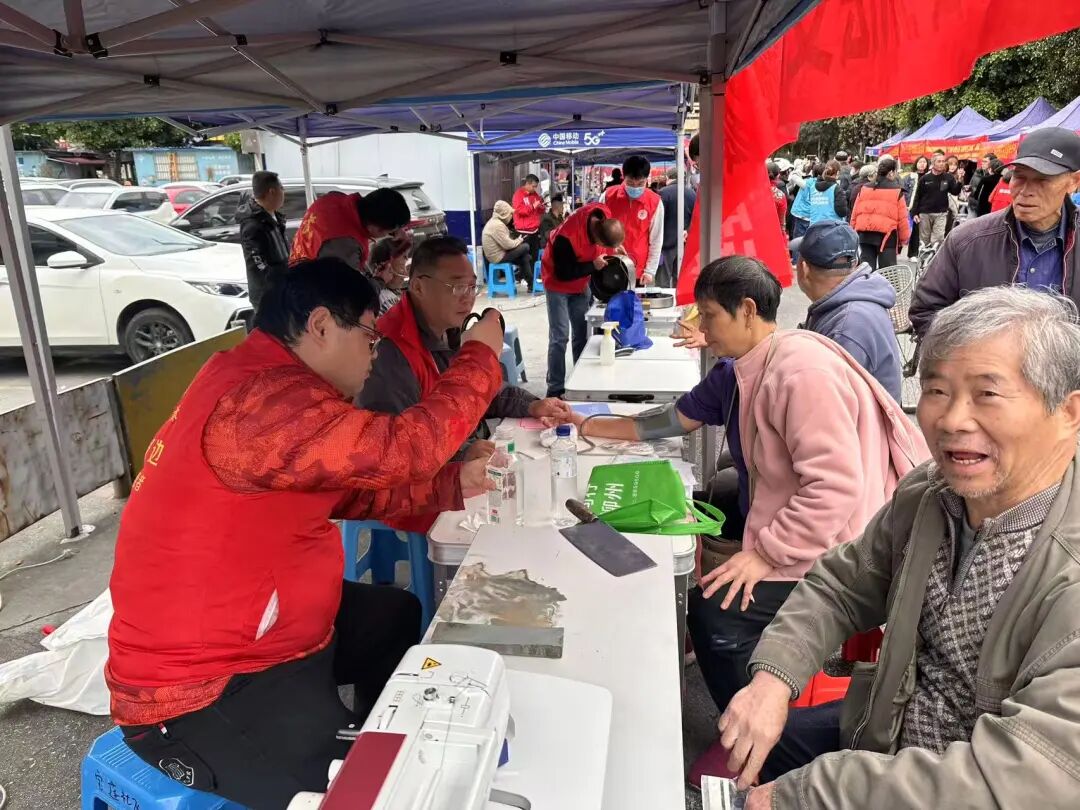 便民服务贴心又实在,用点滴小事解决居民生活烦恼。免费测量血压摊位前,志愿者细心为社区居民测量血压,详细询问居民身体健康状况,提醒老年居民注意饮食、作息规律,普及基础健康养生知识,用专业服务守护居民身体健康,大家听完健康指导后频频点头、倍感安心。磨刀摊位前,志愿者手持工具,认真打磨居民送来的各类刀具,将一把把钝刀打磨得锋利如新,切实方便了居民的日常生活,用点滴行动传递温暖。小电器检查维修摊位上,志愿者逐一检查居民送来的小家电,精准排查故障并进行维修,让“罢工”电器重焕生机、正常运转。免费理发区,志愿者手持理发工具,耐心倾听居民的发型需求,手法娴熟、细致修剪,悉心为社区居民打理出清爽利落的发型,理完发的居民精神焕发、笑容满面,纷纷为暖心义剪点赞。
