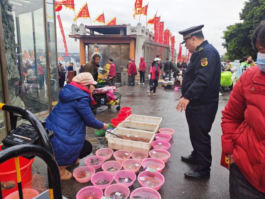 上午12时,龙王出游正式启动。锣鼓喧天,人潮涌动,巡游队伍所到之处,市民游客簇拥围观。此时,执法队员们背对精彩巡游,面向汹涌人潮,与公安、交警等部门密切配合,筑起了一道道移动的“人墙”。他们的视线始终锁定在人流秩序上,时刻关注着是否需要帮助的老人、是否有与家人走散的孩子。