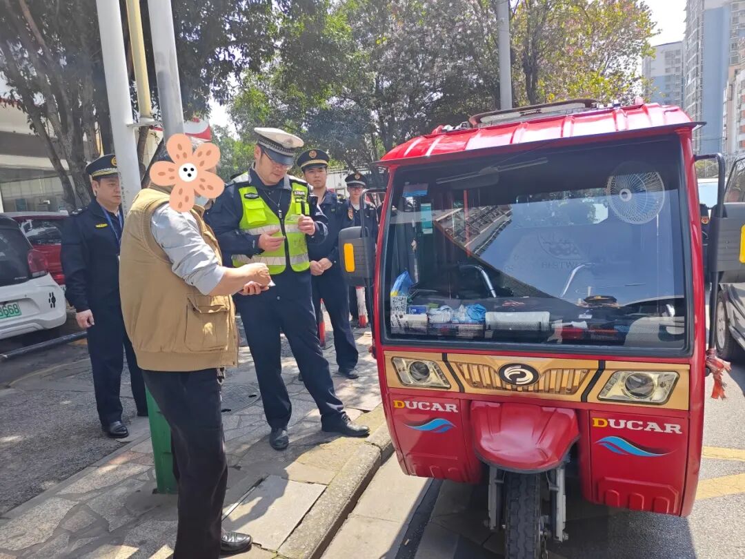 此次整治行动坚持问题导向,聚焦群众反映强烈的“五车”违规载客、无牌无证上路及占道经营等突出问题,精准施策、协同发力。行动前,各部门提前研判辖区“五车”及市容乱象高发时段、重点路段,明确分工、压实责任,形成“城管+交警”联动治理格局,确保整治工作有序高效推进。