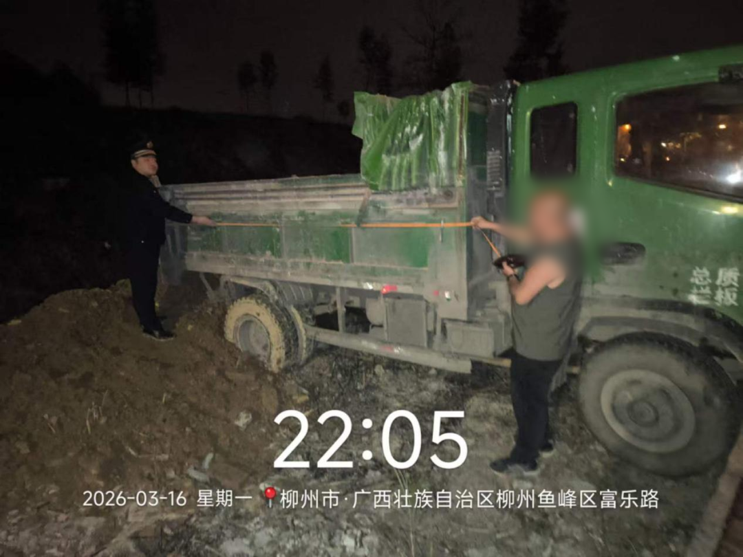 当晚,执法人员巡查至富乐路与江东大道交汇处时,发现一辆绿色货车正在倾倒建筑垃圾。经现场询问,驾驶员承认,其从柳北区红碑路装载装修垃圾后,为节约成本,未经许可便在此随意倾倒,并称“原本想着这是偏僻路段,应该不会被发现。”