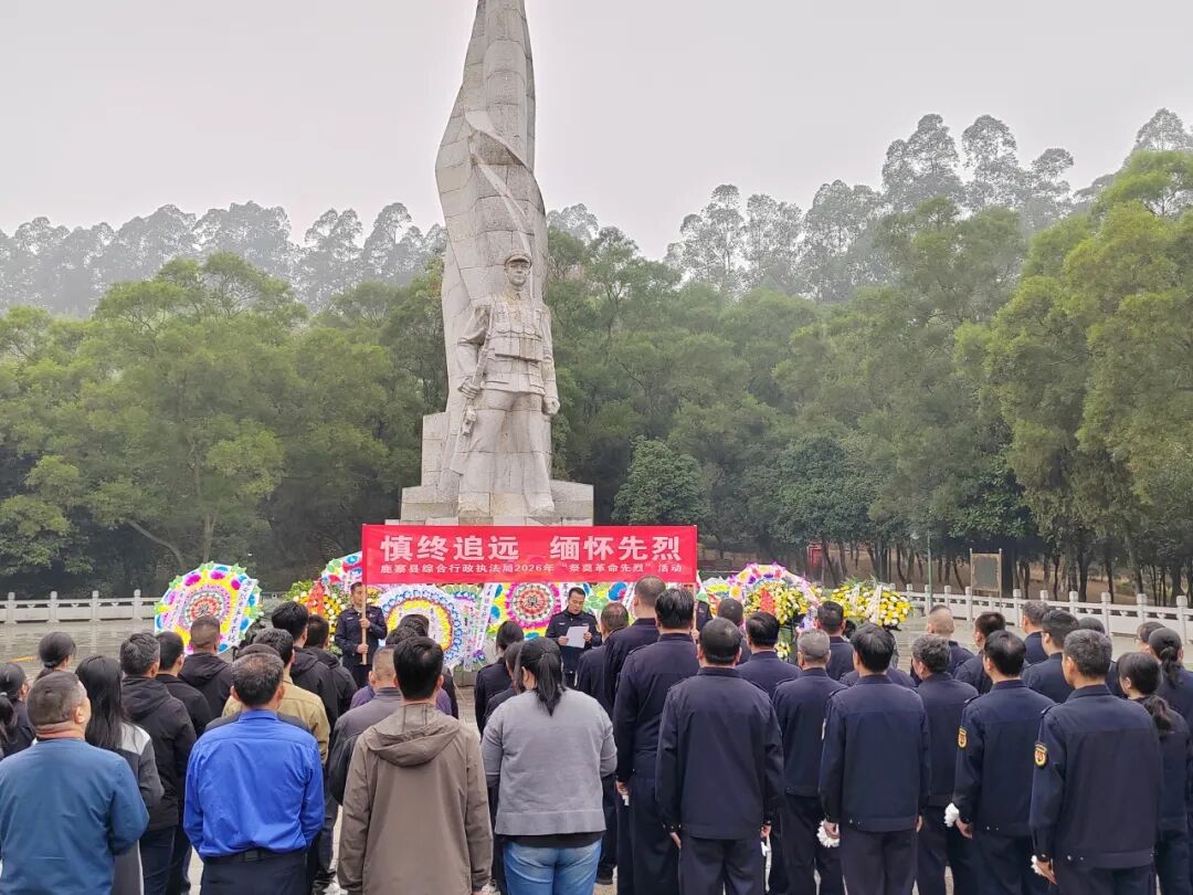 清明时节雨纷纷,烈士陵园寄哀思。为传承红色基因,赓续精神血脉,弘扬中华优秀传统文化,团结各族人民,厚植家国情怀,引导干部职工铭记先辈功绩、汲取奋进力量,近日,鹿寨县综合行政执法局组织局领导班子成员、全体党员、入党积极分子、共青团员到鹿寨县革命烈士陵园开展“慎终追远、缅怀先辈、弘扬传统”主题活动,以实际行动致敬英烈、传承文脉、凝聚精神。