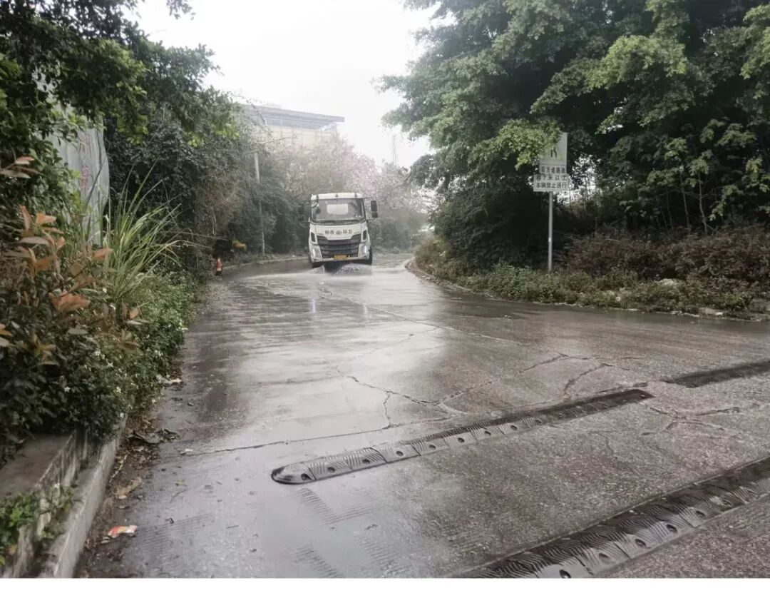 经现场核实,该区域不在柳西环卫所保洁业务管辖范围内,但考虑到时间紧急且油污和阴雨天气叠加极易引发车辆打滑、行人摔倒等安全事故,严重威胁市民出行安全,柳西环卫所立即义务处理现场撒漏油污问题,秉持“服务无边界、责任不缺位”的理念,立即启动应急处置,调配专业人员与作业车辆赶赴现场,采用清洗剂和高压冲洗设备,对路面进行全方位精细化清理。