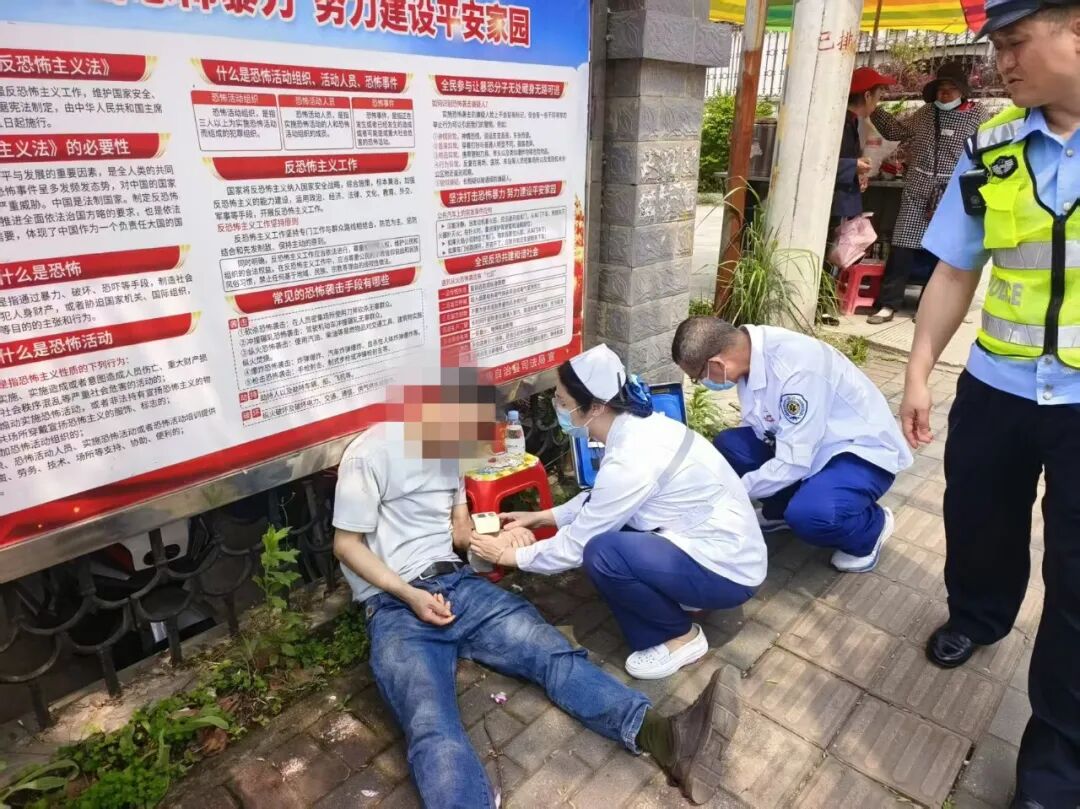 随后,公安民警与120医护人员相继抵达现场。执法人员向医护人员说明前期观察情况、积极协助现场检查与紧急处置,并配合医护人员将群众平稳抬上救护车,送往医院接受进一步检查治疗。
