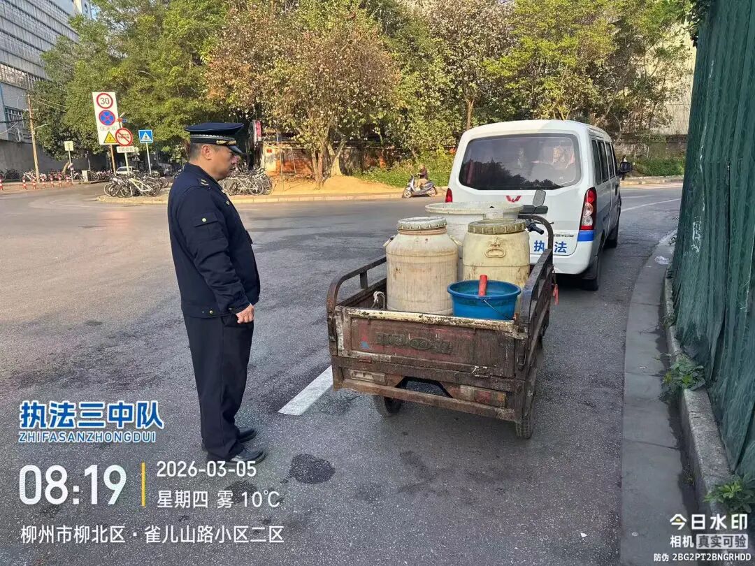 执法人员提醒,产生、收集厨余垃圾的单位和其他生产经营者,应当将厨余垃圾交由具备相应资质条件的单位进行无害化处理。下一步,柳北区综合行政执法局将持续加大日常巡查管理力度,加大对违法收运、处置厨余垃圾行为的查处力度,进一步完善厨余垃圾长效常态化管理机制。