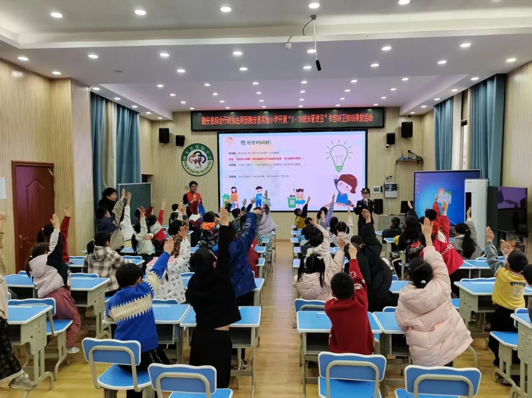 春风送暖,文明同行。3月19日是“城市管理日”,为进一步提升群众对城市管理工作的知晓度、参与度和满意度,营造共建共治共享的城市治理氛围,融安县综合行政执法局联合融安县教育局共同开展“3・19”城市管理日市容环卫知识课堂活动。执法队员满怀热情走进融安县实验小学,为学生们送上一堂生动有趣、干货满满的市容环卫条例知识小课堂。