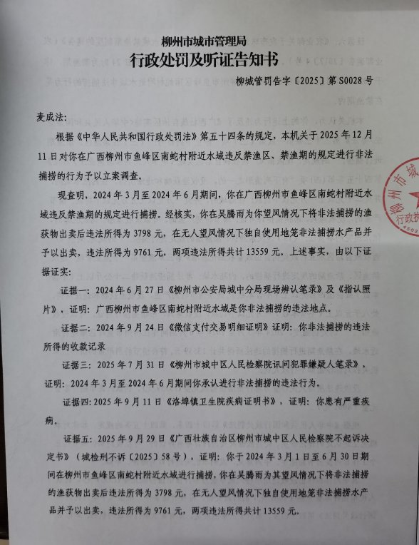本机关于2026年2月28日依法作出《柳州市城市管理局行政处罚及听证告知书》(柳城管罚告字〔2025〕第S0028号)。