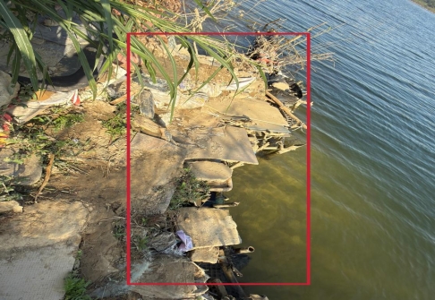 涉案临河构筑物照片及坐标截图材料:
