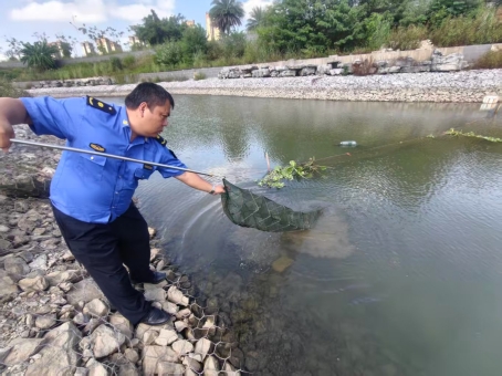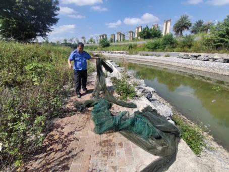 清理龙兴河非法拦河渔网 全力守护水域生态环境