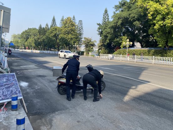 当时执法人员正按照工作计划开展日常出勤工作,行至驾鹤路路段时,突然发现前方一辆由男性市民驾驶的电动车与另一辆女性市民驾驶的电动车险些发生碰撞。危急时刻,男士驾驶员采取急刹措施,却因路面情况导致电动车轮胎打滑,连人带车摔倒在地。