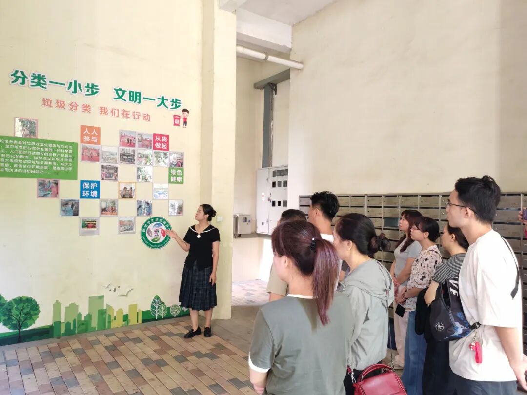 在宣教基地,工作人员们认真聆听讲解员的细致解说。墙上丰富的展板内容,从垃圾降解时间科普到“垃圾分类 变废为宝”的理念传递,再到“分类一小步 文明一大步”的实践号召,全方位、多角度地呈现了垃圾分类的重要性、分类方法及实际意义。一张张记录着垃圾分类实践活动的照片,更是直观展现了垃圾分类从理念到行动的落地过程。